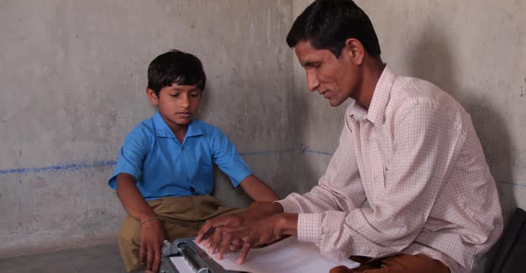 When Sightsavers and its local partners conducted a baseline survey for an inclusive education project in the region, Bheem Singh, a local teacher, brought Mahesh’s case to their attention. Despite initial resistance from the school authorities, Bheem Singh and his colleagues succeeded in getting Mahesh admitted to the school. A detailed individual education plan was then prepared to ensure that Mahesh would have access to all the assistance he required to reach his full potential.